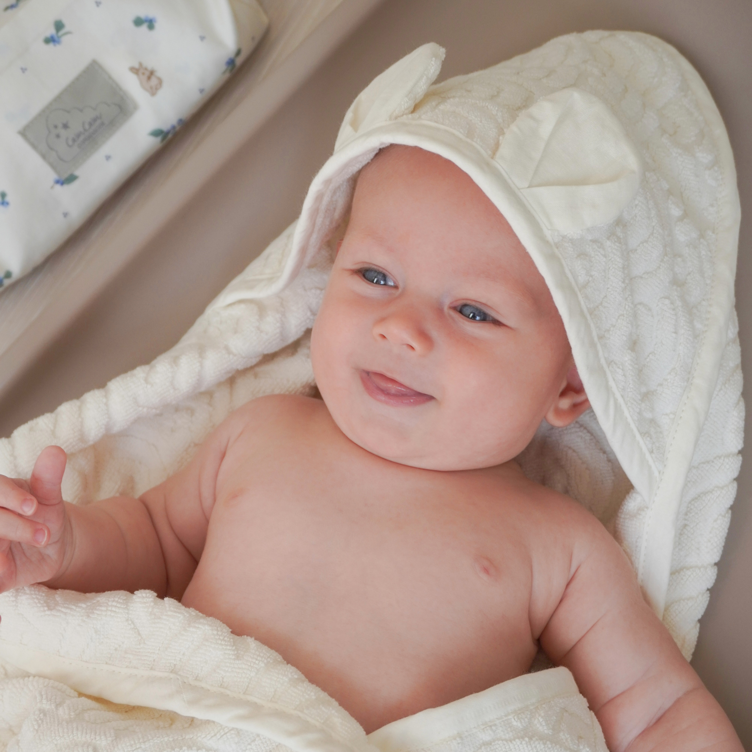 Håndklæde med hætte og ører, Baby - GOTS Off-White