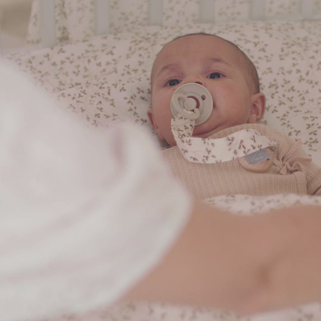 Suttesnoren er testet og overholder alle sikkerhedskrav i den Dansk/Europæiske lovgivning "DS/EN 12586 + A1".Suttesnoren må ikke bruges som legetøj, den skal bruges under opsyn og må ikke sidde på barnets tøj når barnet sover. Tjek suttesnoren jævnligt og kassér ved tegn på slitage.